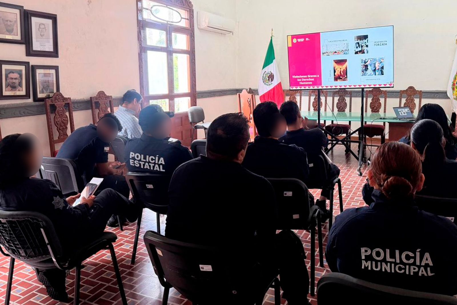 En la sala de cabildo se realizó la capacitación coordinada por el director de Seguridad Pública Municipal, Germán Contreras Cortés, a la que asistió el regidor primero, Jesús Flores Vázquez. Allí el ponente de la SSP proporcionó herramientas que fortalecen la cultura de Paz, con principal énfasis en el respeto a los derechos humanos, al advertir que las 4 violaciones graves son: la Ejecución extrajudicial, Desaparición forzada, Tortura y Discriminación, ésta última que se ha “normalizado”.
